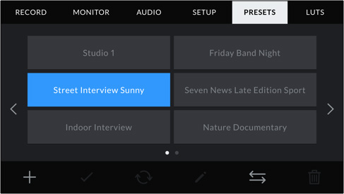 每一位摄影师都有他们自己偏爱和熟悉的摄影机设置,而且不同项目的设置也不尽相同!此时,您可以使用URSA Mini Pro主菜单中设计的预设选项卡来创建和保存多达12个自定义预设,甚至可以将预设保存在CFast卡,加载到不同摄影机中,从而快速完成并统一多台摄影机设置!如果您经常使用不同的摄影机,可将自己的预设保存在CFast卡中,以便随时加载到任何一台URSA Mini Pro上满足任何拍摄需要!
