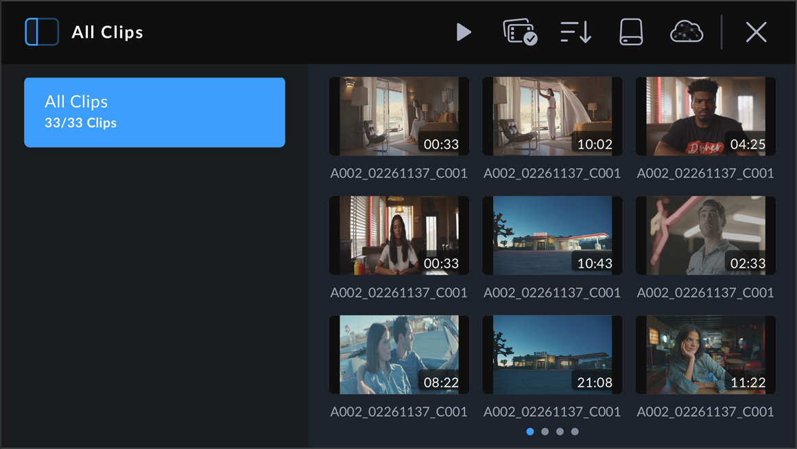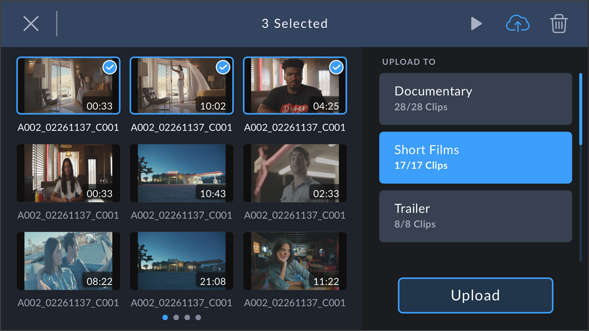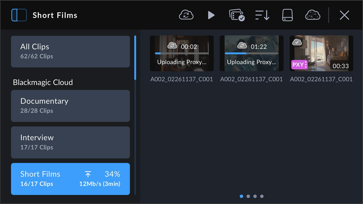 如果您处于离线状态,可以待联网后浏览媒体文件并手动选择想要上传到Blackmagic Cloud的片段。
