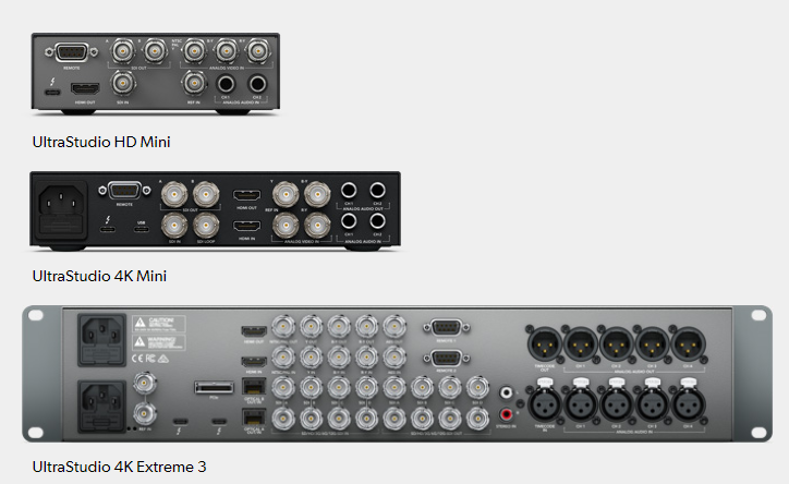 不论您是在现场工作还是后期制作,UltraStudio都能带给您广播及数字电影级采集和播放性能,适用于各种工作流程。UltraStudio是剪辑、调色和视觉特效再到现场采集和现场监看以及后期制作整个流程的理想方案。该系列还推出有12G-SDI型号,支持新的HDR格式,从而满足高端调