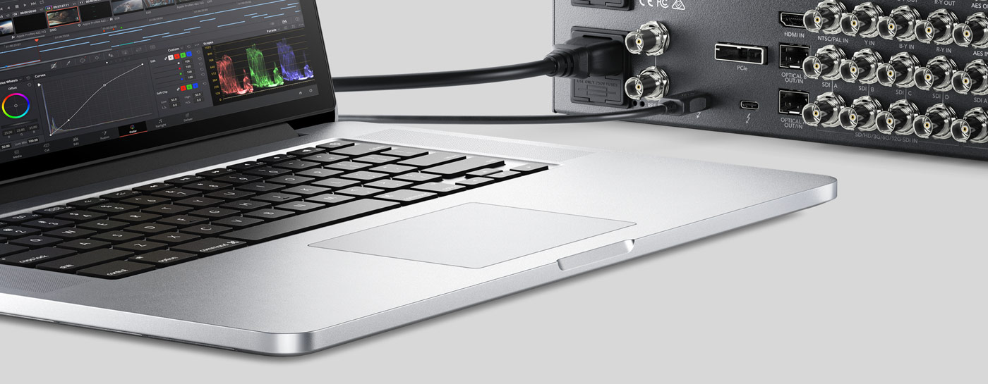 如今可将Thunderbolt 3计算机连接至各种视频设备用于组建高性能编辑工作站、从老式广播录机进行存档、输出广播图文甚至是流媒体直播!只要连接至Thunderbolt 3端口即可获得很广泛的一系列视音频接口,可运行SD、HD、Ultra HD以及4K DCI的格式,上至60帧每秒!它搭