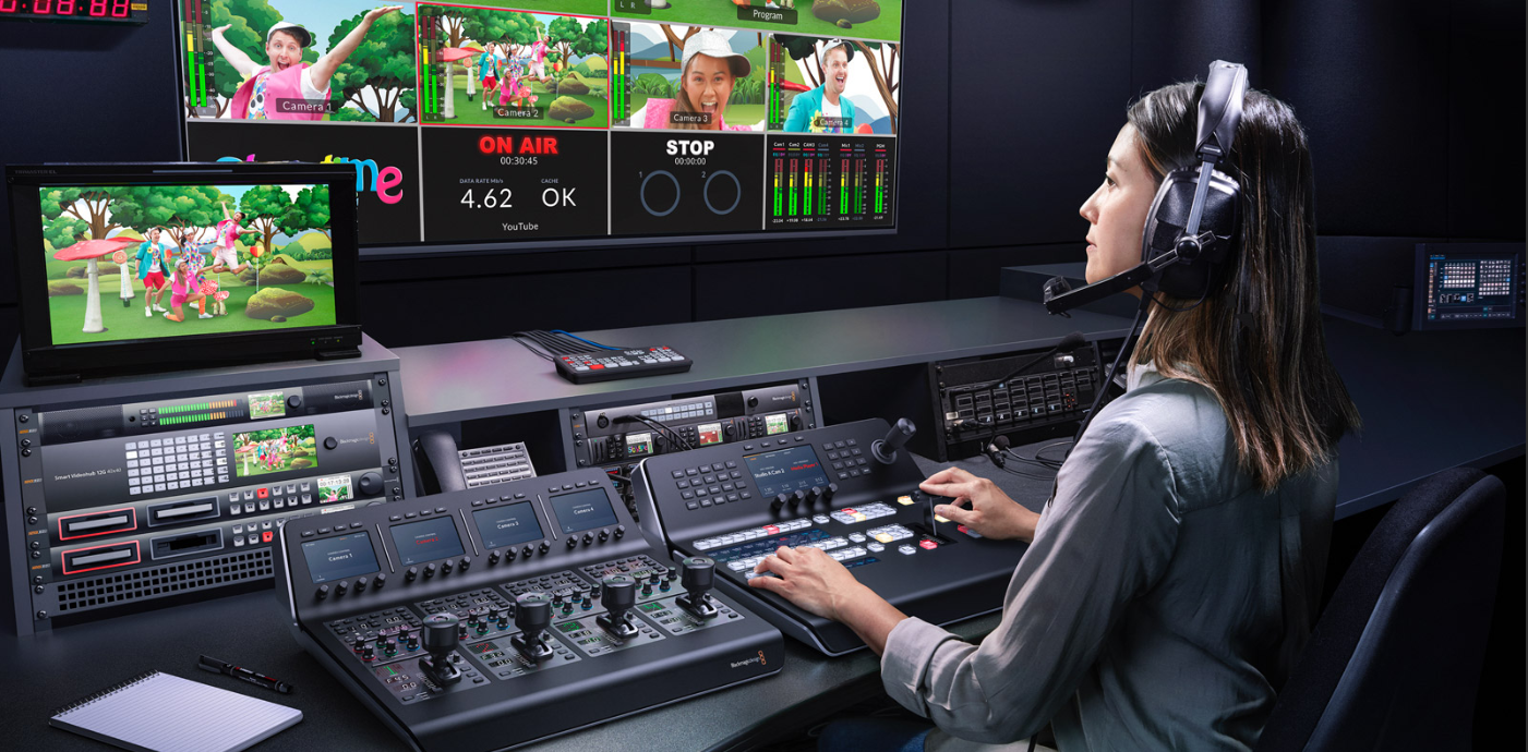 ATEM Mini是访谈的理想选择,您可以连接多机位的主持、嘉宾特写及广角镜头,此外,ATEM Mini尺寸小巧紧凑甚至可由主持人在演播室里实现切换。您甚至可通过HDMI输出进行记录或使用Open Broadcaster软件进行流媒体直播!