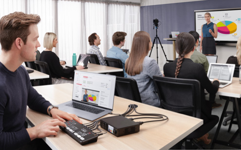 ATEM Mini是制作科教类视频的理想方案!它的设置步骤快捷方便,您可以带上它前往不同地点,采用多机位现场制作方案记录一系列教育类题材的影片!连接计算机和摄影机并使用ATEM Software Panel还能加载标题并添加视频特效。