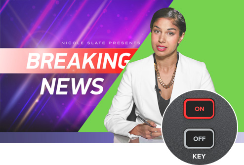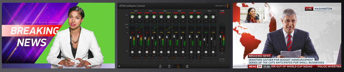 ATEM Mini拥有强大的ATEM Advanced Chroma Key高级色键,能实现绿屏抠像效果,是新闻播报或现场演讲的好帮手!切换台所配备的色键是一项极其强大的工具,它能通过拾色器对背景色彩进行采样,从而自动生成抠像参数,为您带来精准的边缘和光斑控制,甚至还有前景色彩校正器来匹配前景层和背景层,确保获得天衣无缝的合成效果。您还可以通过创建带有绿屏或蓝屏背景的图文来打造出标题叠加效果。ATEM Mini Extreme型号内含多达4个ATEM Advanced Chroma Keyer色度键控,足够为虚拟制作的每个固定机位都配备一个键控功能!