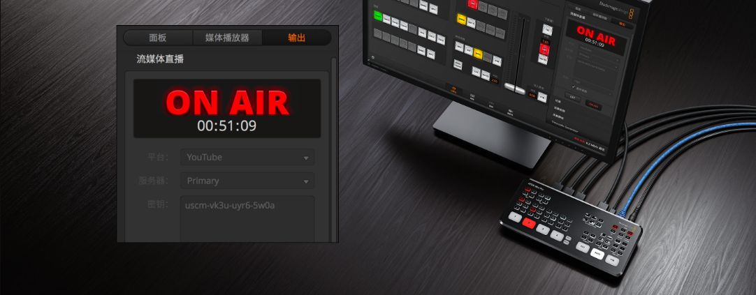 现场制作是完成节目的快速途径,而且您可以同时通过YouTube向全球观众流媒体直播。ATEM Mini的USB网络摄像头输出可连接任何计算机,它就像是一个内置网络摄像头,能与各类社交媒体平台的流媒体软件搭配使用!它配备多达4路HDMI输入,让您能够部署多台摄影机覆盖各个角度,捕捉演出中的广角镜头以及每位表演者的特写镜头。或者,您可以连接带有PPT幻灯片、视频片段播放及网站的计算机或游戏机等。所有内容均可实时切换,从而您可以在YouTube、Facebook、TwitchTV以及更多的社交媒体平台上进行流媒体直播!