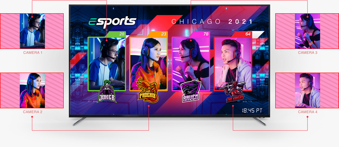 ATEM Mini Extreme型号内含4个上游色度键控,能帮助您打造出栩栩如生的虚拟场景!这4个独立的色度键控工具能为4台摄影机分别提供一个键控功能,轻松打造4机位虚拟场景。ATEM Mini Extreme提供8路输入,其中4路可连接摄影机,另外4路可连接制作虚拟场景用的计算机,获得渲染后的背景画面。您不用移动摄影机位置,而是可以采用固定机位虚拟场景制作方案。具体操作时,只要从媒体播放器和媒体池加载预先渲染好的静帧图像背景就可以。您可以设置宏命令来更改摄影机,并将正确的背景加载到媒体播放器中,甚至还可以使用DeckLink Quad HDMI和实时虚拟场景软件进行工作!