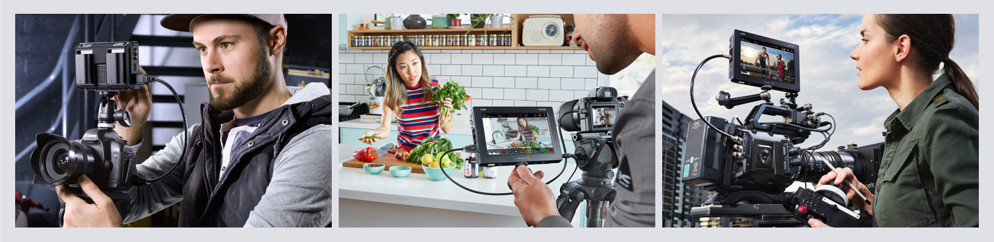 有了明亮的5英寸和7英寸触摸屏,Video Assist使镜头构图和精准对焦变得易如反掌。这块触摸屏能在您拍摄的同时显示关键信息,包括时间码、播放控制、音频表和直方图用于查看曝光。您还可以自定义LCD,从而添加或移除当前文件名、峰值对焦、斑马纹、伪色、帧导栏、3D LUT以及更多叠加信息。3D LUT设置可实现以理想的色彩和风格来监看镜头画面,如果您想要记录到文件中,也可以将这一LUT烧录到所记录的影像素材中。如果您使用Blackmagic RAW格式,3D LUT是唯一加入元数据的设置,因此可在后期制作时禁用该设置。