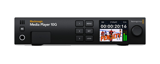 通过双12G-SDI视频输出,Blackmagic Media Player可以连接现场制作切换台,从而叠加带透明度的播出图文。内部拥有RGBA和YUVA帧缓冲器硬件支持。处理RGBA图文时,Blackmagic Media Player可以在填充输出上自动将RGB像素转码成10bit YUV,将Alpha通道转码成10bit键输出。两路SDI输出连接现场制作切换台后即可叠加在视频上。键输出确保画面中的透明元素顺利混合。Blackmagic Media Player是播出图文和Stinger的理想工具!