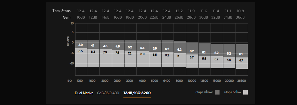 在专业摄影机领域,ISO是衡量图像传感器对光线敏感度的指标。也就是说,ISO数值越高,添加的增益值也越大,因此自然照明条件甚至夜间拍摄都不是难题!Blackmagic Micro Studio Camera设有从-12dB(100 ISO)到高达+36dB(25600 ISO)的增益,这一优化设计可大幅降低图像中的颗粒和噪点现象,并同时保持完整的传感器动态范围。第一级原生ISO设置为400,是在演播室灯光下进行拍摄的理想数值。第二级高基ISO设置为3200,比较适合在昏暗照明环境中拍摄。增益可从摄影机HDMI菜单进行设置,也可以通过SDI/HDMI远程摄影机控制连接从切换台远程设置。