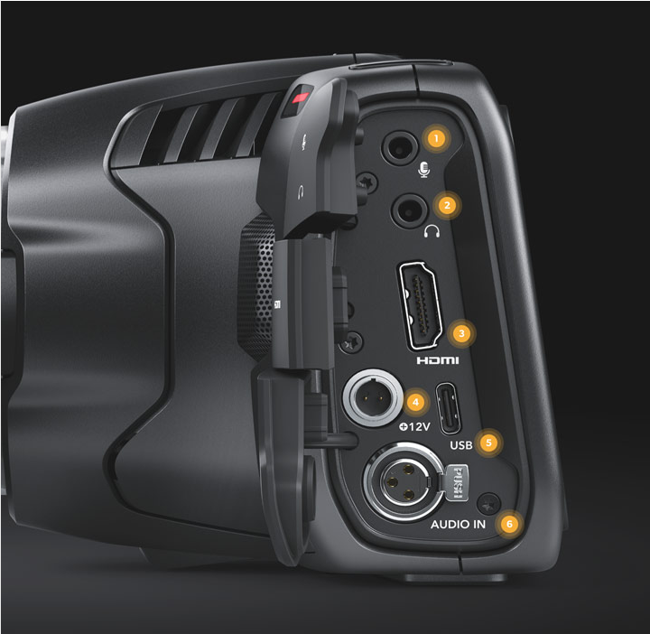 Blackmagic Pocket Cinema Camera内置专业的高保真录音品质,无需另外携带笨重的录音设备,解放您的双手!两款型号均搭载一个带48伏幻象电源的Mini XLR输入,可连接领夹式麦克风和吊杆式麦克风等各类专业麦克风。四个内置麦克风具备极低的噪声基底和防震防风特性,不论您身在何处都能获得优质录音。同时,摄影机还设有一个可连接视频摄像机类型麦克风的3.5mm音频输入接口,一个用于播放的内置扬声器,以及一个3.5mm耳麦插孔。