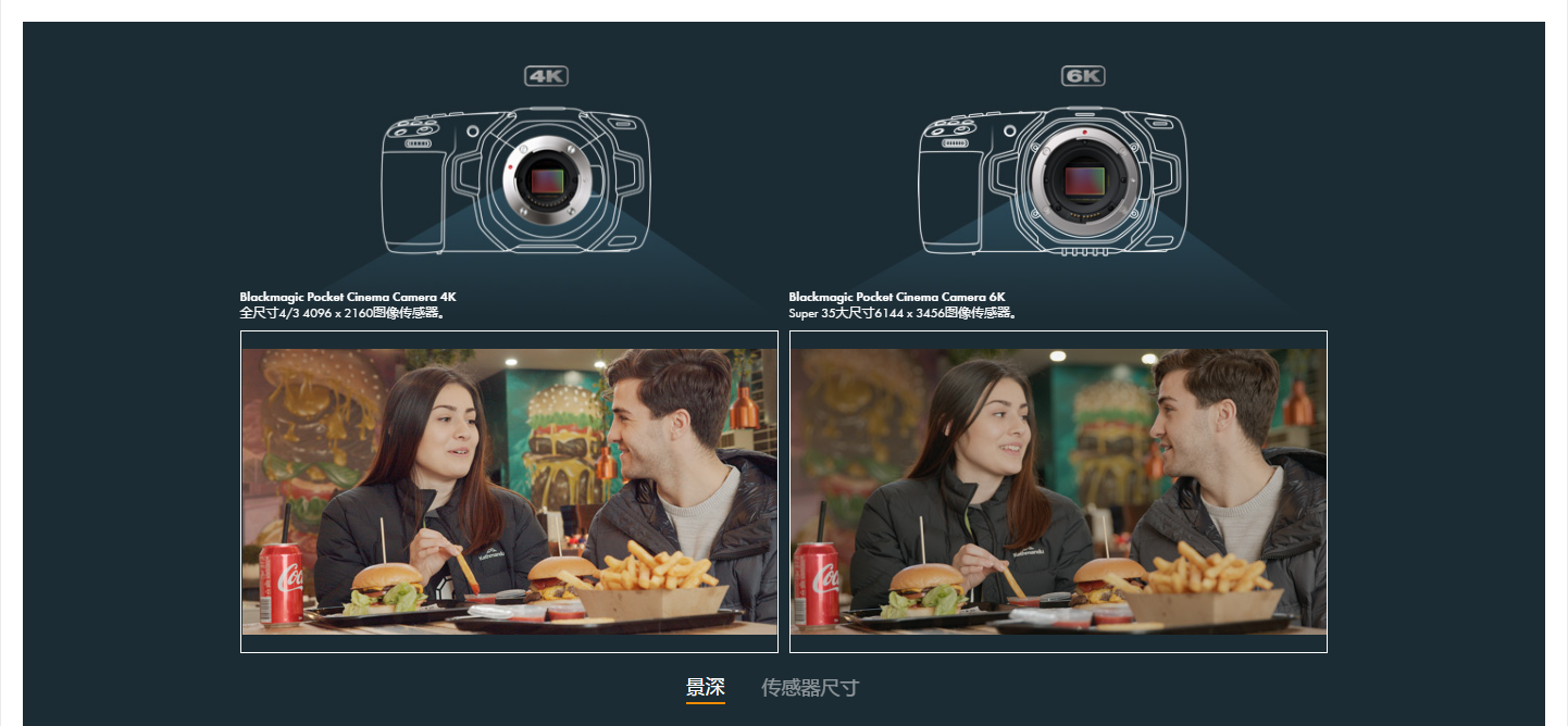 Blackmagic Pocket Cinema Camera 6K型号搭载6144 x 3456更高分辨率的Super 35传感器和EF镜头卡口,让您可以利用更大型的EF相机镜头来打造出具有电影质感的浅景深画面,以虚化背景展现朦胧美感!