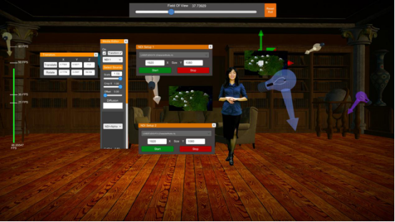 Cgangs Livestudio V3D是新一代虚拟演播室解决方案,可以作为无跟踪的虚拟演播室使用,这意味着无需购买昂贵的跟踪设备来显示虚拟摄像机的运动。只需一个固定机位,我们就可以使用应用程序中的几个按钮来实现缩放、平移、倾斜、旋转、移动和臂式的虚拟运动。