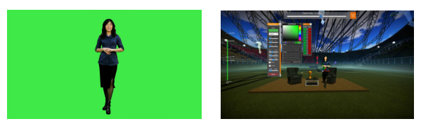 所谓虚拟演播室,就是利用计算机产生出虚拟的三维背景和道具,然后通过视频合成系统,最后生成全三维、真人与虚拟布景和道具融合的效果。采用虚拟演播室技术,可以根据空间设计师的想象力制作出任何想象中的布景和道具。许多真实演播室无法实现的效果,虚拟演播室都可以轻松实现。例如,在演播室内搭建大型体育场,演员在地球甚至宇宙中任意地点进行实况转播,模拟任意天气状况,季节更替等等。