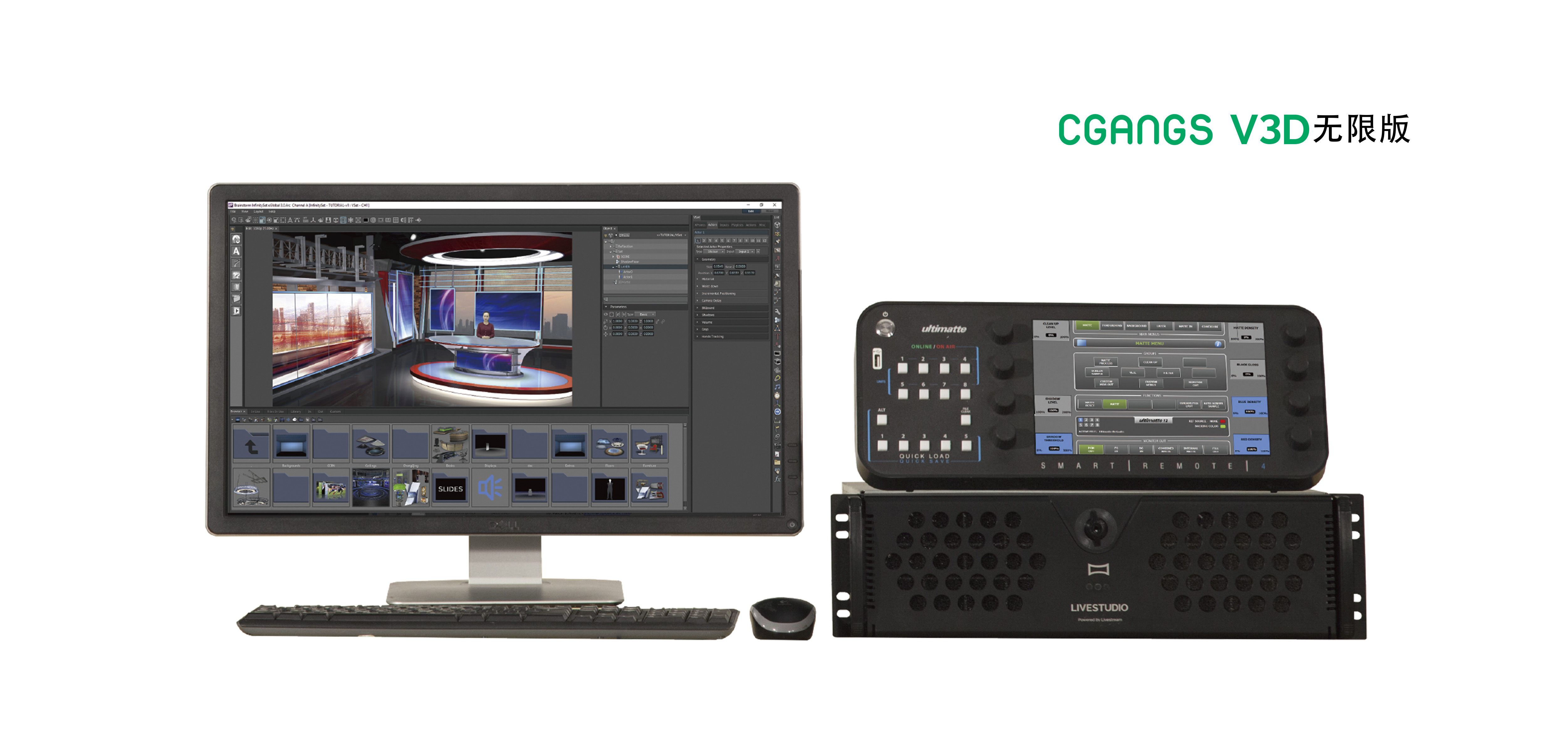 Cgangs V3D—无限版虚拟演播室集成度很高,可以选择外置的接口箱也可以选择内置板卡。对摄像机也不挑剔,内置的色键功能在任何环境下都可很好的适应,其它的虚拟系统正相反,它们必须指定昂贵的演播室摄像机。条件稍不符合就不能用。