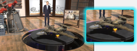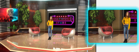 所谓虚拟拟演播室,就是利用计算机产生出虚拟的三维背景和道具,然后通过视频合成系统,生成全三维、真人与虚拟布景和道具融合的效果。采用虚拟演播室技术,可以根据空间设计师的想象力制作出任何想象中的布景和道具。许多真实演播室无法实现的效果,虚拟演播室都可以轻松实现。例如,在演播室内搭建大型体育场,演员在地球甚至宇宙中任意地点进行实况转播,模拟任意天气状况,季节更替等等。
