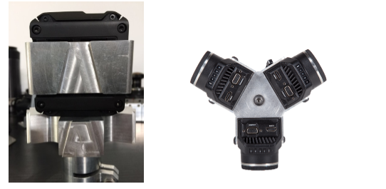 录机专用支架上,Argus同样也采用了全铝合金支架,精度高、设计巧妙,安装调试仅需要几个螺丝即可,方便快捷。在设计时采用了V口倒挂设计,这种设计能够使用设备的自身重量加以固定,再加上夹具背后的散热孔使得Video Assist4k的散热风扇能够起到应有的作用,不会因为散热问题而死机。支架中空,可以方便的套在专用脚架上,与VR专用支架形成组合,方便快捷。