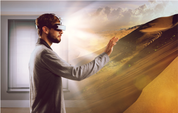 现阶段VR视频的观看模式还是佩戴头显,头显的功能能够将3D画面中的左右眼视频准确的投放出来,使观看者能够更好的感受视频所带来的空间信息。