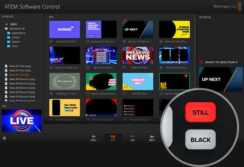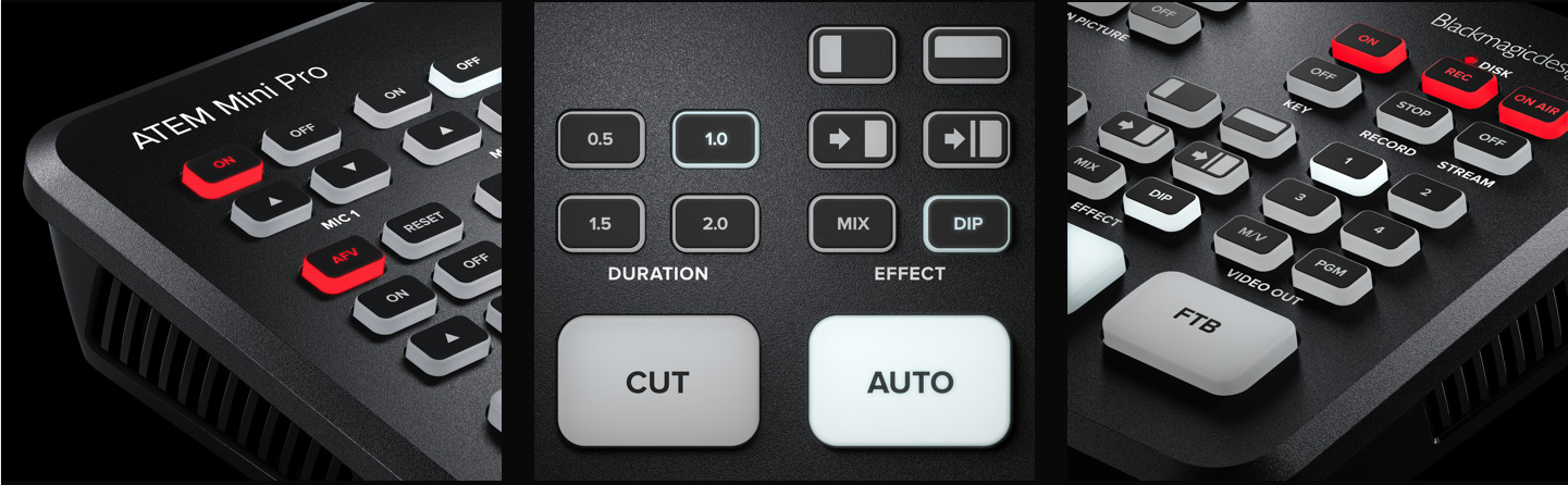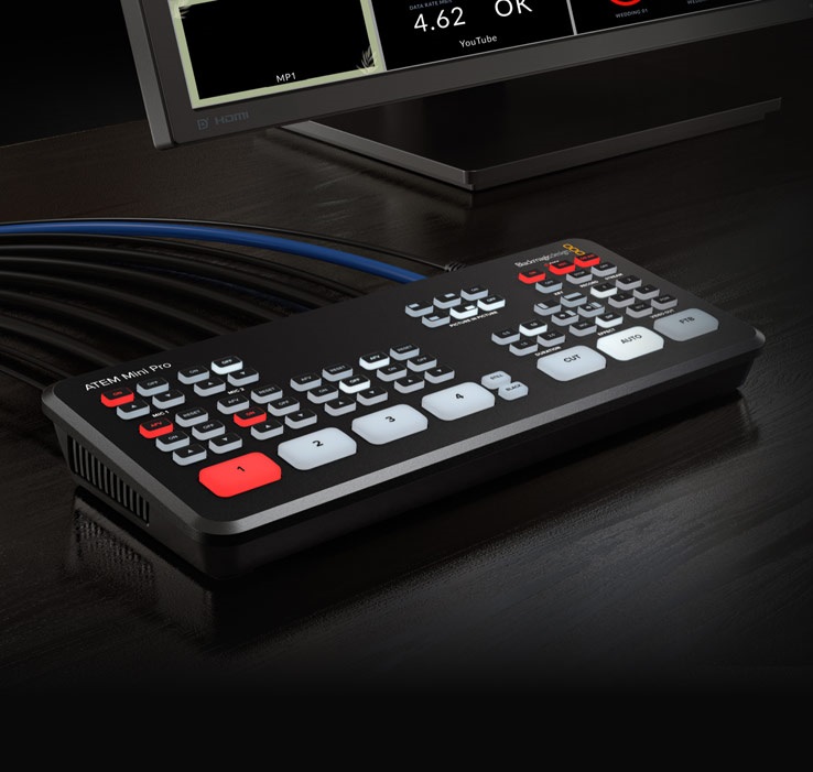 根据具体使用的型号,ATEM Mini还支持将流媒体数据直接录制到USB闪存盘或CFexpress卡上!这意味着您将获得更长的录制时间,以及与流媒体播出一样带有AAC音频的H.264视频文件,从而直接上传到YouTube或Vimeo等各类视频网站。配合使用USB集线器或Blackmagic MultiDock时,设备还支持连接多个硬盘。当一个硬盘录满后,设备会自动跳转到下一个硬盘上继续工作,实现不间断录制。录制设置和硬盘选择可以通过ATEM Software Control进行设置,并且可通过内置的多画面分割显示录制状态。连接Blackmagic Pocket Cinema Camera时,您甚至还可以远程触发摄影机的录制功能!