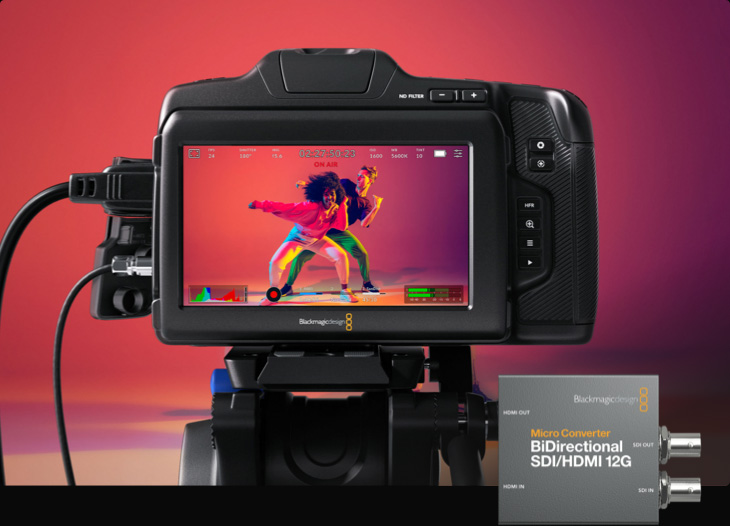 您还可以使用Micro Converter BiDirectional SDI/HDMI连接Blackmagic Pocket Cinema Camera等HDMI摄影机。它会将摄影机的HDMI信号转换成切换台所使用的SDI输入。然后,再转换切换台的SDI输出,并将摄影机控制信号嵌入到HDMI数据链路,发送回摄影机。这样您就拥有全面的摄影机控制,操控镜头和内置调色工具,以及实时Tally!